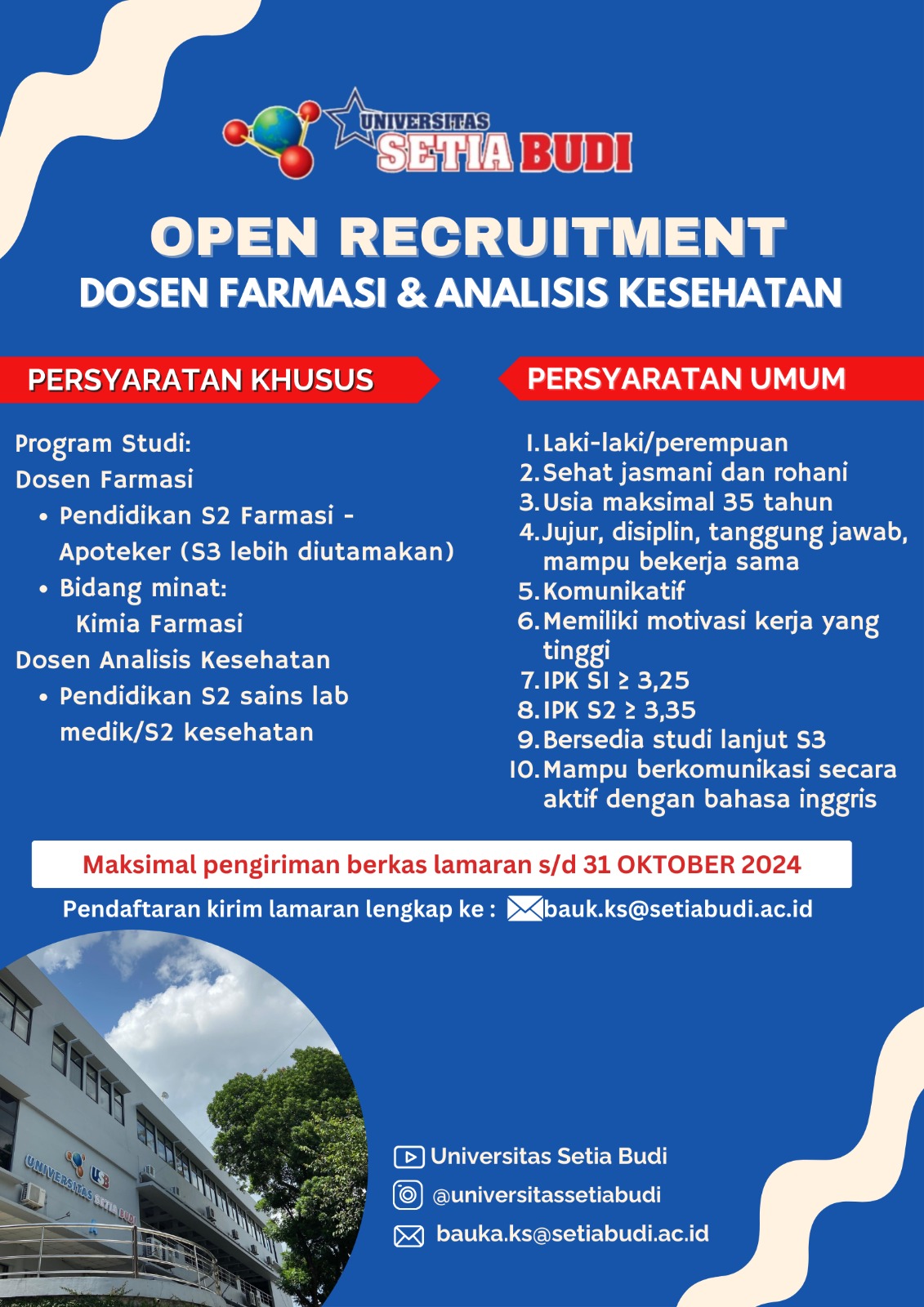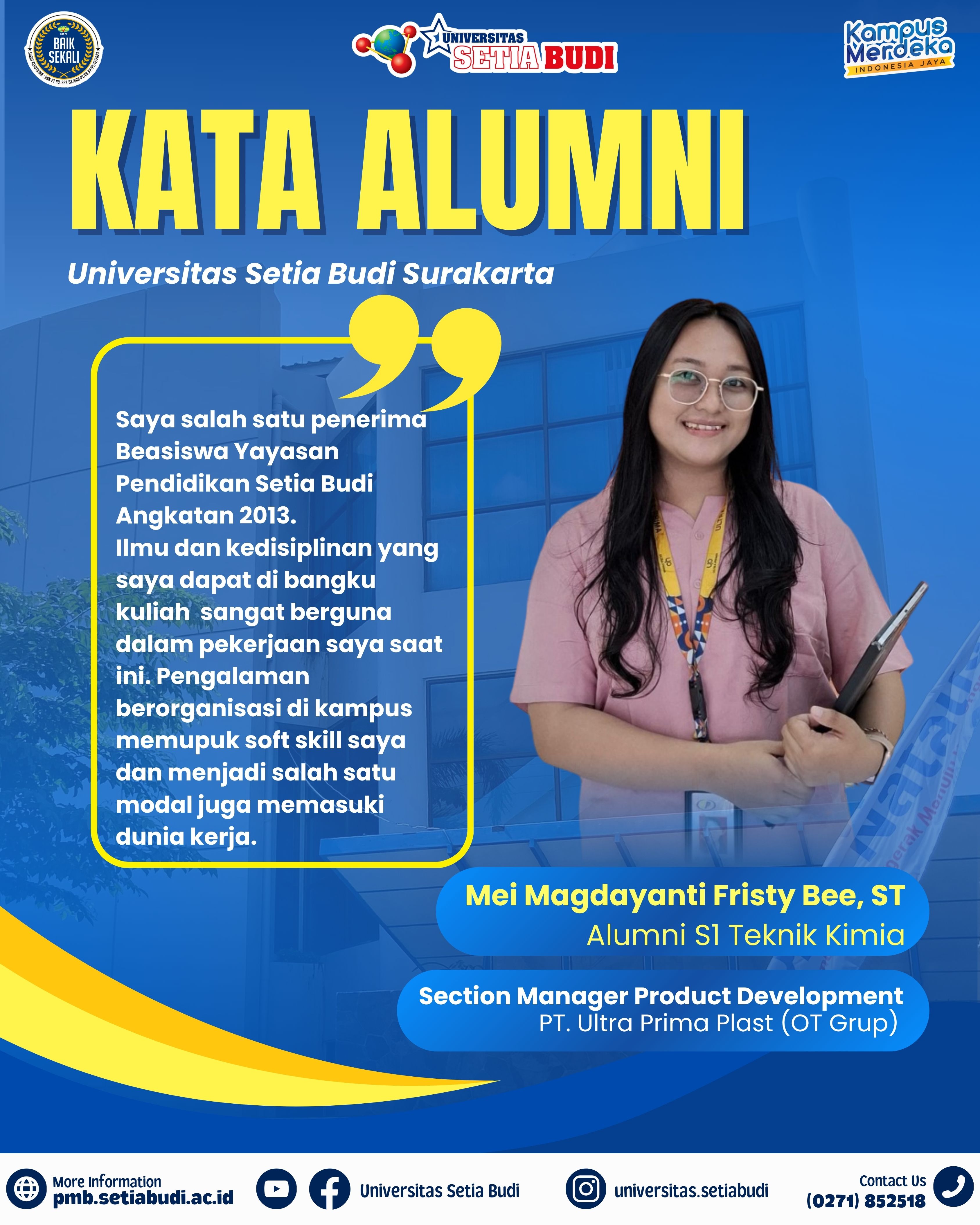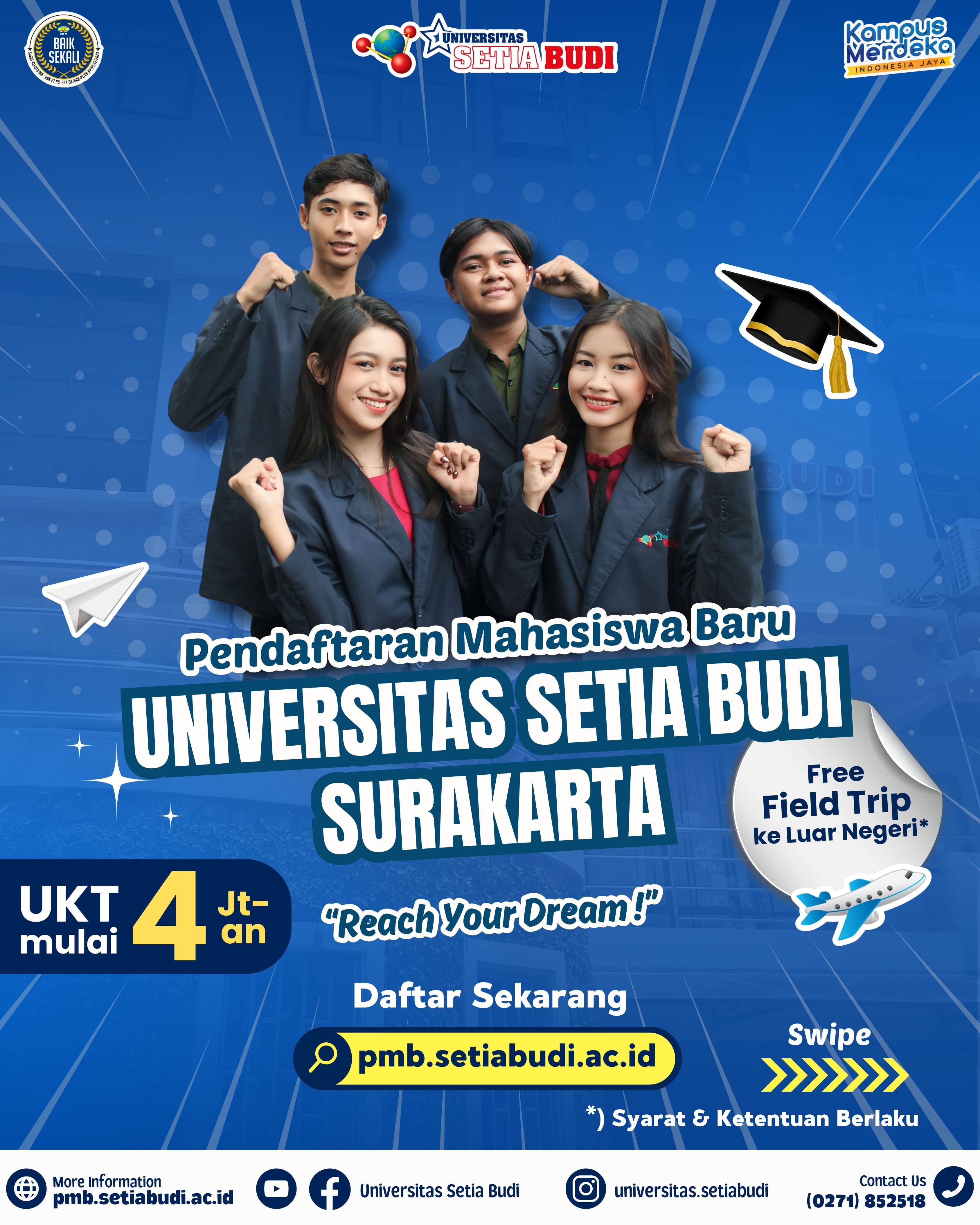 Universitas Setia Budi menyelenggarakan Wisuda Periode I Tahun 2025 pada Kamis (08/05/2025) di Gedung Wanita Sasana Krida Surakarta yang diikuti oleh 170 wisudawan. Dalam laporan pendidikan, Wakil....